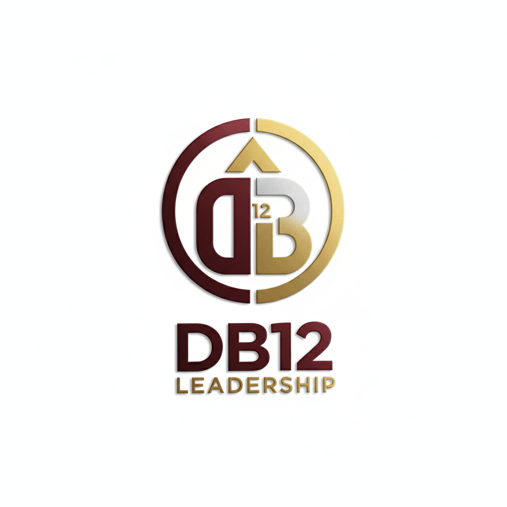 Here's a professional logo for DB12 Leadership using maroon and gold colors on a white background: