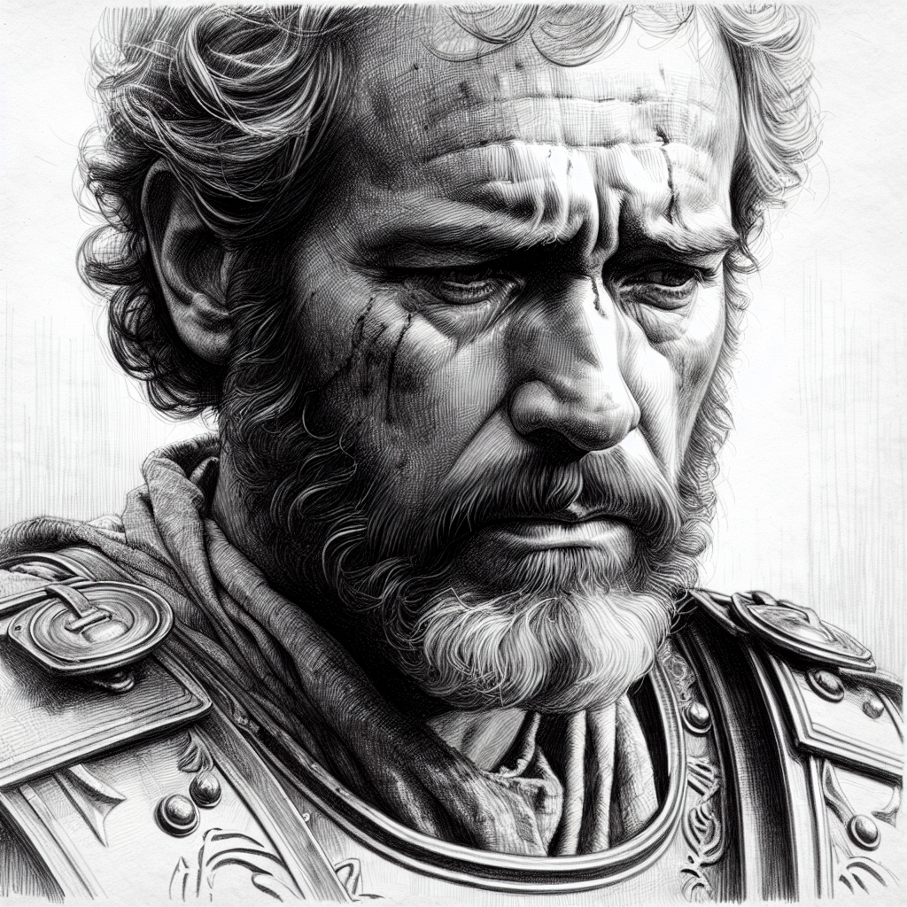 create a black and white pencil sketch of a roman soldier who lived during the time of Jesus and is deeply sorry for hurting Jesus - DrawGPT