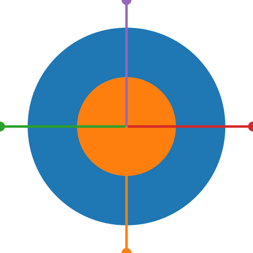 // Now, I will draw four lines extending from the center of the world to the edges.