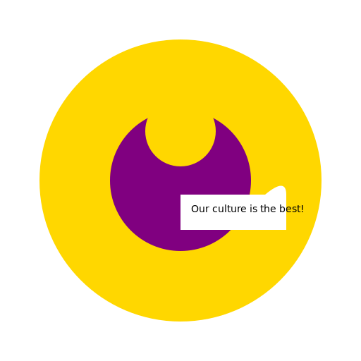 // Draw speech bubbles with phrases like "Our culture is the best!" pointing inward