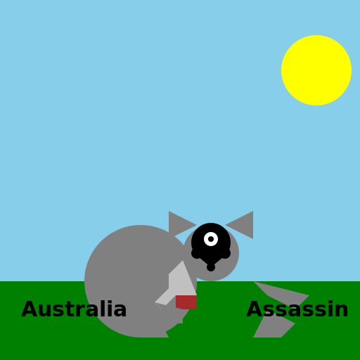 // Comment: Watch out for the kangaroo assassin, mate! *winks*