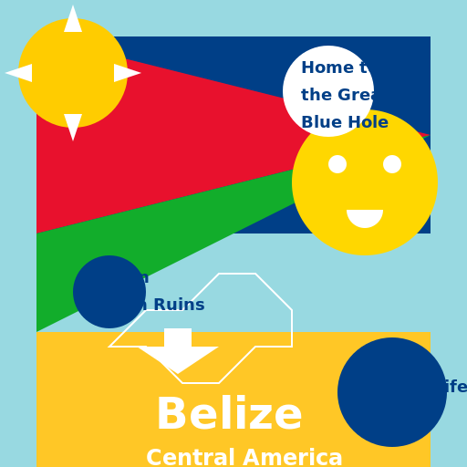 // Funny comment: "Belize, where the sun shines and the smiles are brighter than the flag colors!"