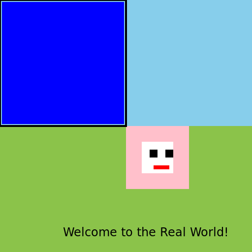 ctx.fillText('Welcome to the Real World!', 128, 480);