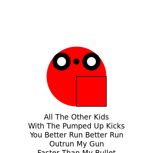 // Fun fact: This drawing is based on the lyrics of the song "Pumped Up Kicks" by Foster the People. Remember, stay safe and don't play with guns!