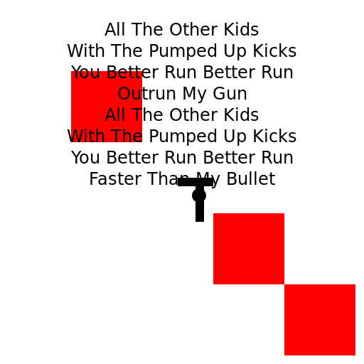 // "All The Other Kids With The Pumped Up Kicks You Better Run Better Run Outrun My Gun All The Other Kids With The Pumped Up Kicks You Better Run Better Run Faster Than My Bullet"