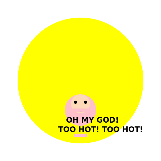 // A Person That Is On The Sun Burning And Saying "OH MY GOD! TOO HOT! TOO HOT!"