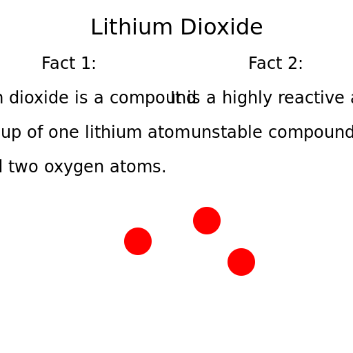 // Lithium dioxide is a compound made up of one lithium atom and two oxygen atoms.