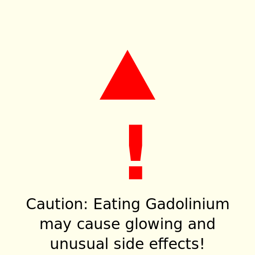 // Fun fact: If you try to eat Gadolinium, you'll become a human glow stick! Stay away from it!
