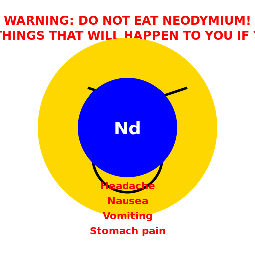 // WARNING: DO NOT EAT NEODYMIUM! THESE ARE THE FOLLOWING THINGS THAT WILL HAPPEN TO YOU IF YOU TRY TO EAT NEODYMIUM.