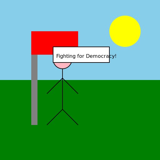 // Draw a speech bubble with the text "Fighting for Democracy!"