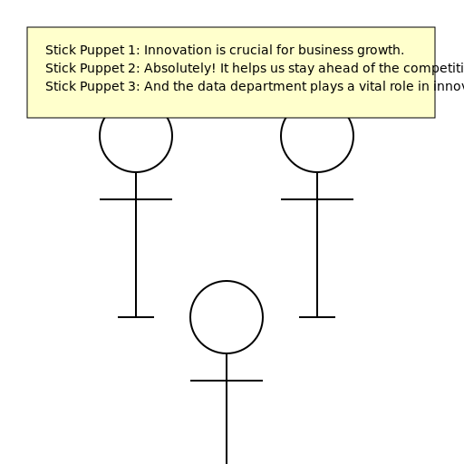 ctx.fillText("Stick Puppet 1: Innovation is crucial for business growth.", 50, 60);