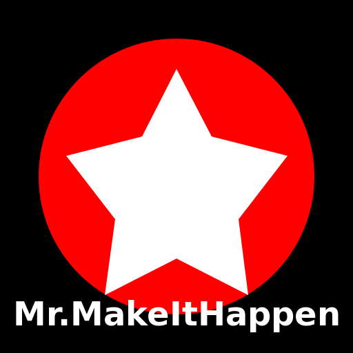 // "Mr.MakeItHappen Symbol: A bold red circle with a white star symbolizing graphic design art, similar to Hellstar brand."