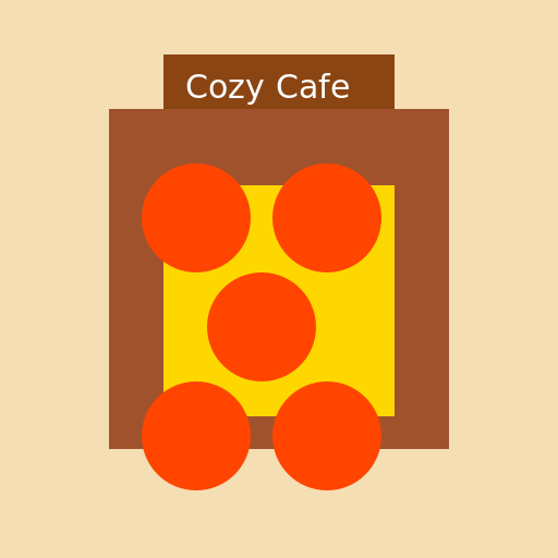 ctx.fillText('Cozy Cafe', 170, 90); // Write the text on the sign