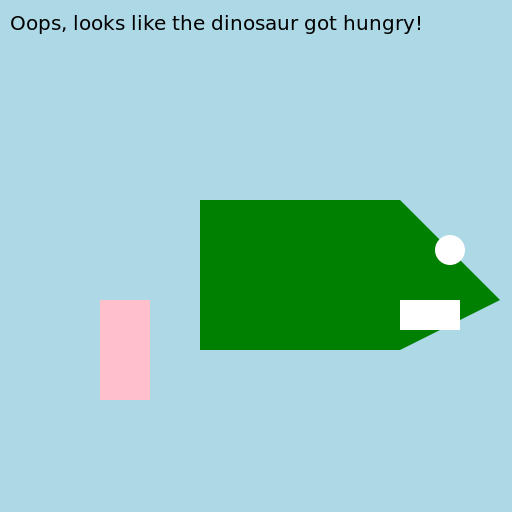 ctx.fillText('Oops, looks like the dinosaur got hungry!', 10, 30);