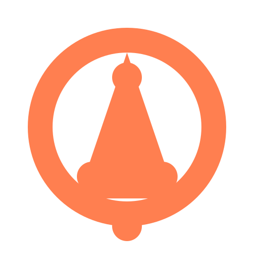 // "A modern and beautiful web-blog icon/logo with a simple and slick design. It features a main circular shape in orange with a white inner circle. Inside the main shape, there is a triangle pointing upwards. Additionally, there are four smaller circles placed strategically around the design. The overall design is professional, detailed, and of the best quality."