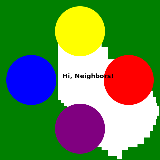 ctx.fillText('Hi, Neighbors!', 200, 250);