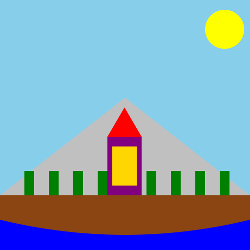 // The magical land of Mystica awaits, with its enchanting castle, lush trees, flowing rivers, and a radiant sun. Let your imagination soar in this mystical world!