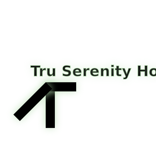// Black 3D Text saying "Tru Serenity Hospital" with a glow of sage green