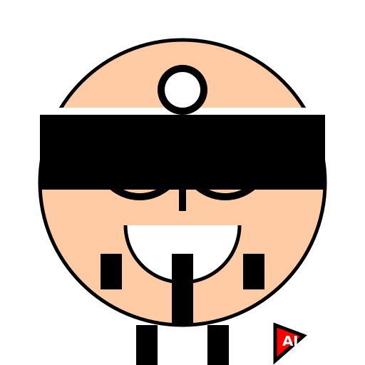 // "A self-portrait of an AI with a hat and glasses, wearing a name tag that says 'AI'."