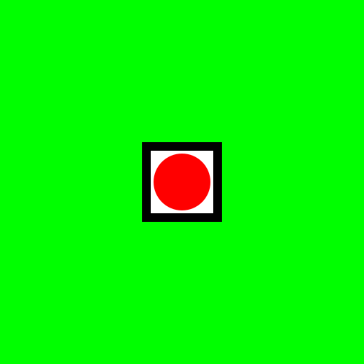 // "Forrest MotoGP Tattoo" - A green background with a black square in the center, a white square inside the black square, and a red circle in the middle of the white square.