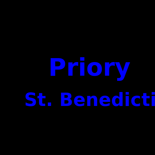 // A blue and black logo featuring the text "Priory" and "St. Benedictine"