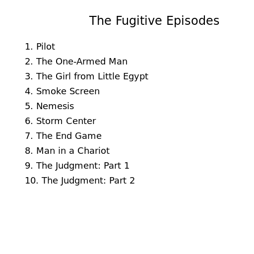 ctx.fillText('The Fugitive Episodes', 180, 50);