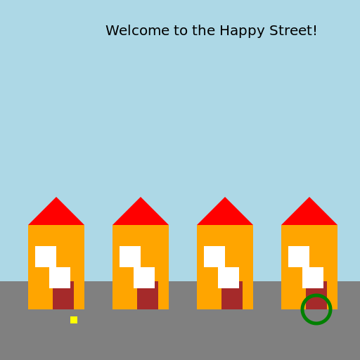 ctx.fillText('Welcome to the Happy Street!', 150, 50);