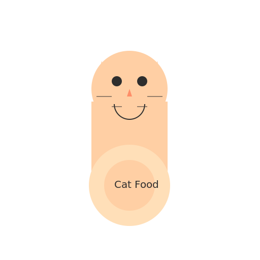 // Draw a cute kitty eagerly looking at a bowl of cat food