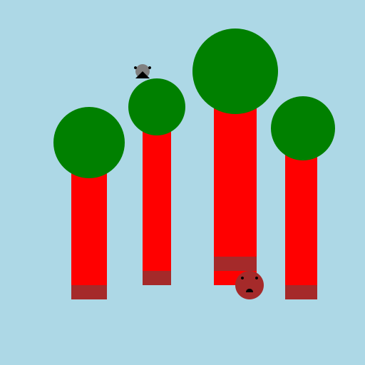 // This forest is full of life, with a happy squirrel and a cute little bird.