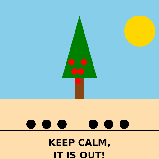 // Draw Text: "KEEP CALM, IT IS OUT!"