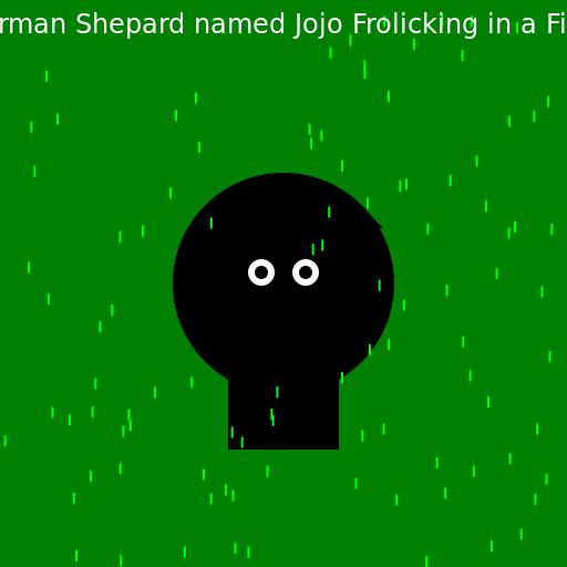ctx.fillText('German Shepard named Jojo Frolicking in a Field', 256, 30);