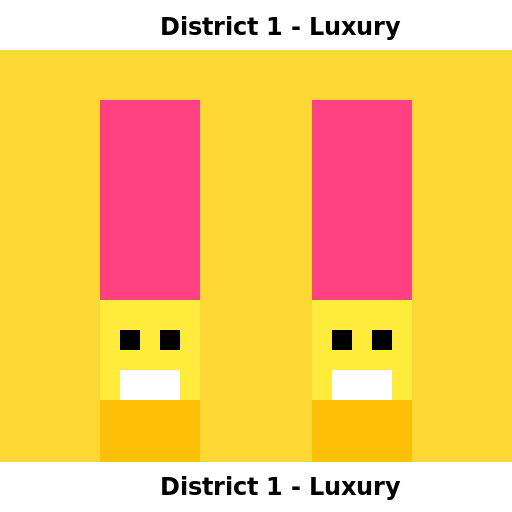 ctx.fillText('District 1 - Luxury', 160, 495); // Bottom banner text