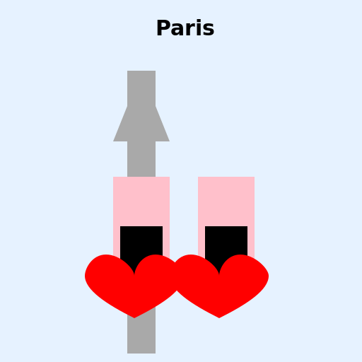 // admire the city of Paris. Hearts float in the air, symbolizing their affection.