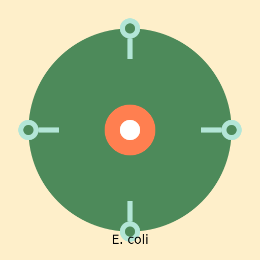 // Fun fact: Did you know that E. coli is a bacteria commonly found in the intestines of humans and animals? It has both harmless and harmful strains, but don't worry, this drawing is of the harmless kind!