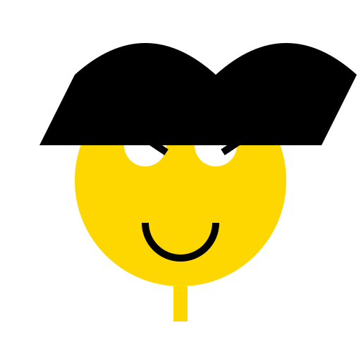 // Drawing an anime character with a bright yellow body, white eyes, black hair, and a smiley mouth.