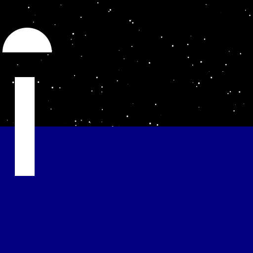 // Dark Sky with Stars, Ocean, Beacon, and Half Moon