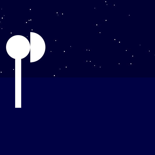// Dark Sky with Stars, Ocean, Beacon, and Mirrored Half Moon