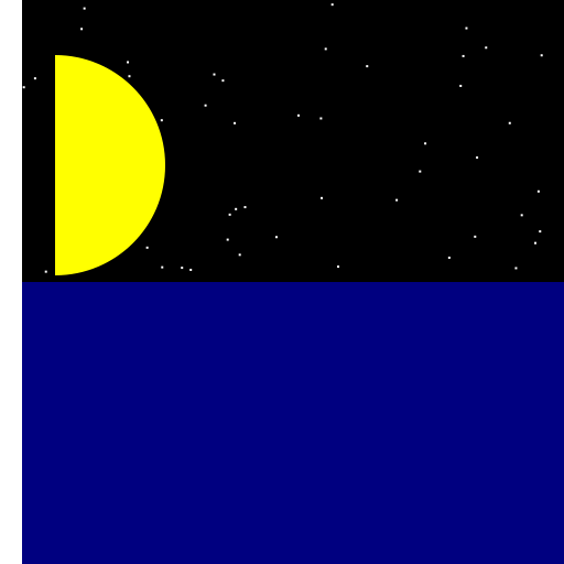 // Draw rotated 90 degrees mirrored half moon on the left of the sky above near the beacon