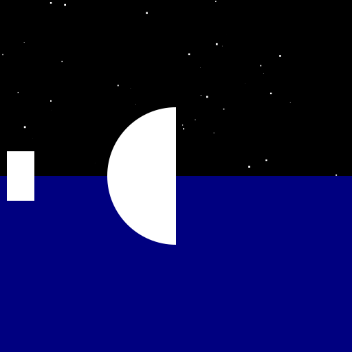 ctx.arc(0, 0, 100, 0, Math.PI, false); // Draw the half moon