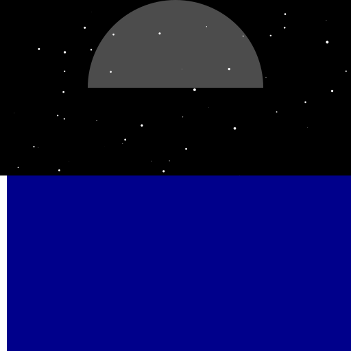 // A Night Sky with Stars, Ocean, Beacon, Moon, and Moon Reflection