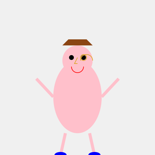 // There you have it, a bizarre person with a golden monocle and bright blue shoes!