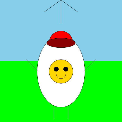 // Let's draw Egg Boyeen, a happy little egg character on an adventure!