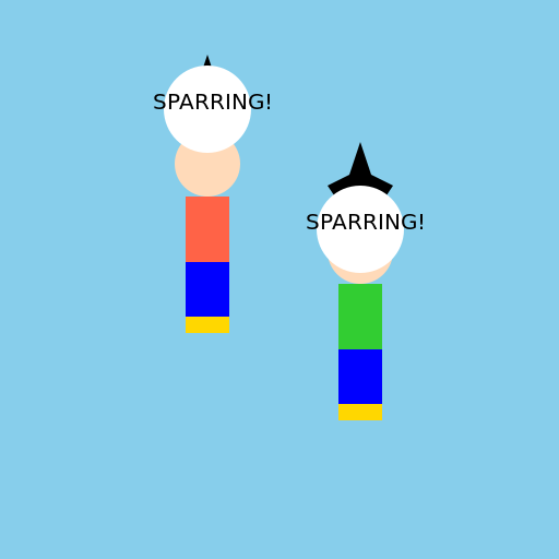 // Add a context element (a big "SPARRING!" text) to explain the scene is friendly