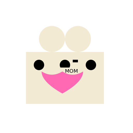 // Draw a cute cow with a heart-shaped "MOM" tag on its collar