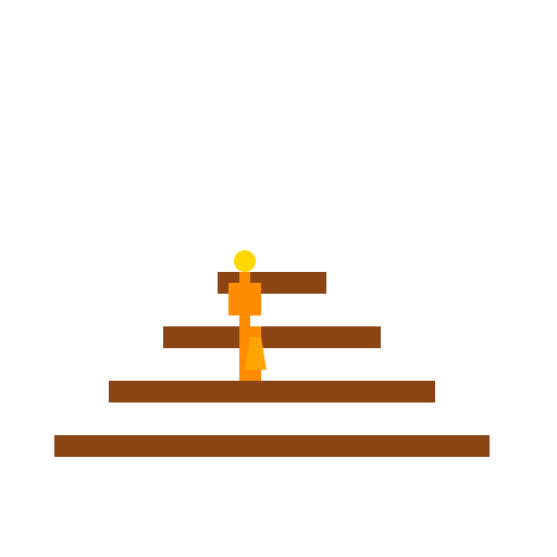 // Man Hopping Up Stairs in an Orange Sleeping Bag