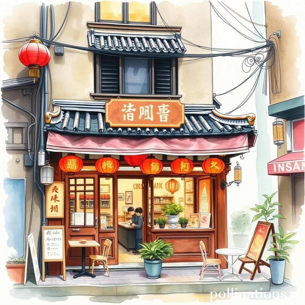 A watercolor painting of a Chinese restaurant in Shanghai, street scene, cozy, traditional architecture, lanterns, daytime