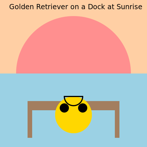 ctx.fillText('Golden Retriever on a Dock at Sunrise', 32, 32);