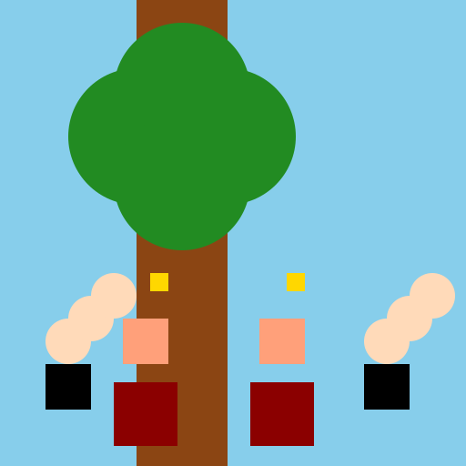// Kids Climbing a Tree with Weird Creatures Living in Tree Houses