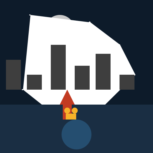 // "Camping with Family" - A night at the forest with family, tent, trees, and lake.