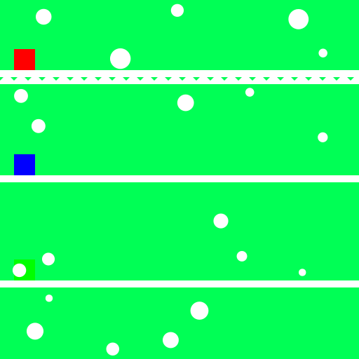 ctx.fillRect(20, 370, 30, 30); // Swimmer 3